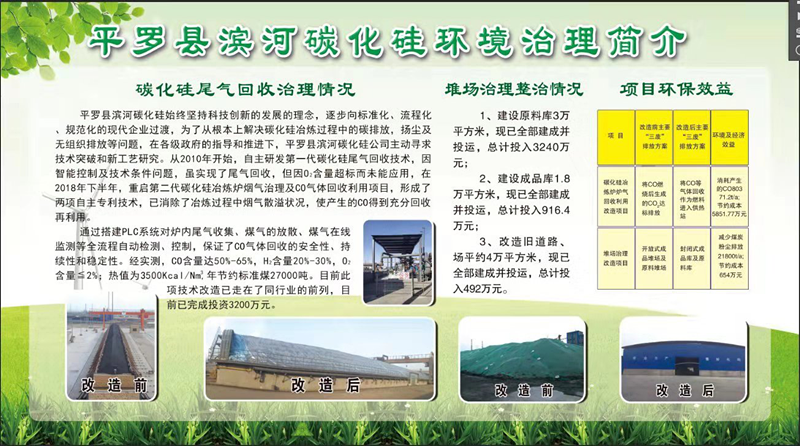 2019年3月11日,由自治區(qū)政協(xié)副主席李彥凱帶隊(duì),對平羅縣重點(diǎn)環(huán)保工程整改進(jìn)行了調(diào)研和督查。督察組來到了我公司寧夏濱河碳化硅制品有限公司,先在我公司展廳了解了我公司的發(fā)展歷程和觀看了環(huán)保整治前后的ppt,然后到現(xiàn)場對整治完的工程進(jìn)行了觀摩。